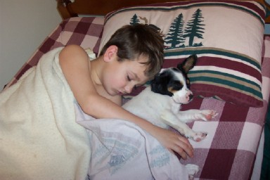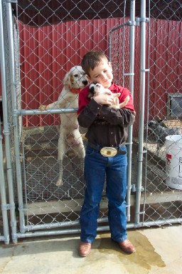 "We are excited to bring Allison home. We enjoyed our visit with Alli's birth family. We were impressed with the disposition of all of your dogs. You have a top notch facility! . . . Alli & Clay are best friends already! Alli is part of the family with the dogs, cats, and us. . . Alli is a 'wonderdog,' she was barking at the door to potty and sleeping with us the second day we had her. . . It is remarkable the joy one puppy can bring to a family. Alli has definitely brought great joy to our family." - Pete, Kelli, & Clay, Ohio