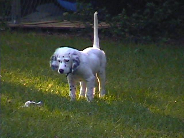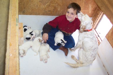 "It has been about three months since we picked up our Llewellin pup from the Highway Dan/Twincedar Annie litter. 'Lily' has been a wonderful dog, and quickly made herself at home . . . She is very smart, sometimes too smart for her own good, but she definitely keeps me on my toes with her training . . . I have no doubt that she could easily handle everything that I throw at her. Just by watching her in the backyard, I am impressed with her hunting instincts --she is constantly pointing and chasing bugs, birds and anything else that might wander across her path. I'll probably be introducing her to birds in the near future, so I will try to drop you a line about her progress once she gets going. Lily is, by far, one of the sweetest and good natured dogs I've ever had, as well as one of the smartest. She seems to have a great hunting drive, and a real desire to please. She loves to talk to us, although sometimes she talks too much!! . . . We are very happy with Lily, and we're so glad that we were able to find you when we started looking for another dog. We were impressed with the quality of your kennel, and truly appreciated the time that you took to discuss everything with us before we made our decision. Thanks again, and I'm sure you'll hear from us in the future." - Steve & Tessa, Mississippi