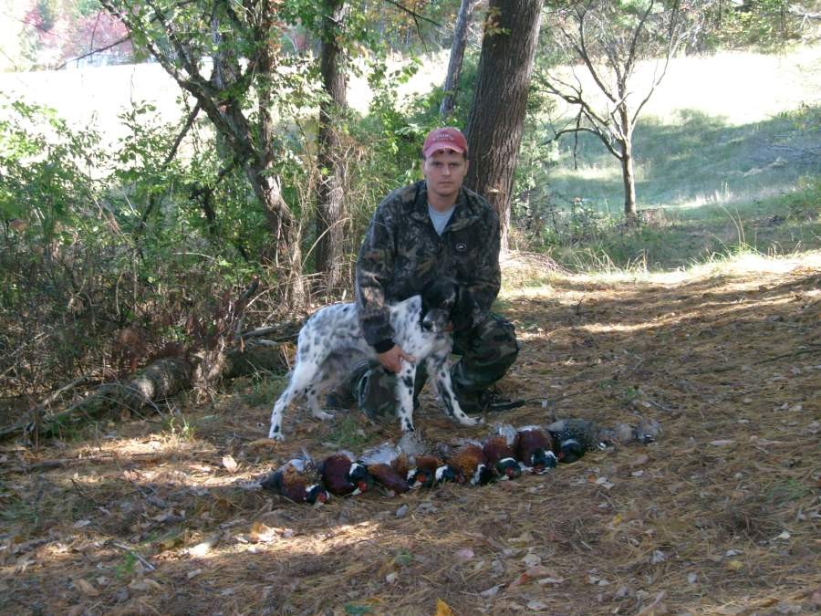As you know he is my first Bird Dog. And like I have said before everyone I know who has seen him work can not believe he is as young as he is. What I can tell you is that all those birds were from him. I put out 10 pheasants and 8 quail. He pointed all 10 pheasants but the guys shooting only got 8 of them. Of the 8 quail released 2 flew away on release leaving 6 to hunt. He pointed all 6 and the hunters shot 3 and 3 got away. He also was flawless on every command I gave him. He really works hard to please me every time out.