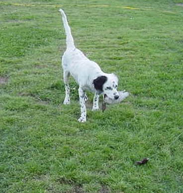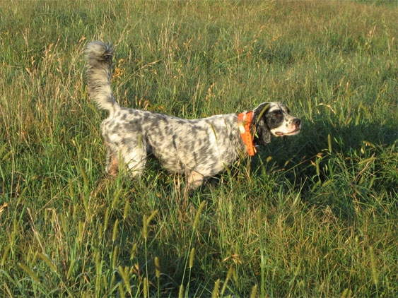 Just a quick note to let you know that the setter pup (Gypsy) I got from you is doing unbelievable work for a 9 month old dog. Great finds, solid points held to wing and so far no creeping on running birds. She backs and honors like a finished 4yr old. She will fetch every bird she can get to first, but I can call her off if necessary. She does like to run around a bit before retrieving but I’m not complaining. She has a great personality around the house and has had no issues with other dogs. Up ‘til now she has worked on pigeons, quail and chucker. Next week she graduates to pheasant and I am now planning to take her to South Dakota for some wild birds in November. Believe me, I did not expect to have her to this point for another year. This pup is making me look like a much better trainer than I am. It is just amazing what natural abilities a dog can be born with. You are to be congratulated for breeding such a fine dog. I even started working her on blind retrieves, we’ll have to see about this but I figured there must be something I have to actually train her to do.