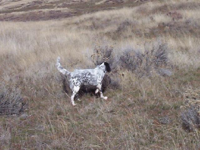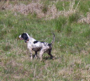 The Roosters have run, and he has learned to adapt, and signal me. I can then send him on and he will rush forward and find the bird again and re-point.