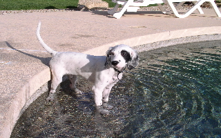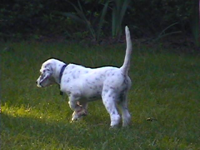 "Just wanted to let you know how our pup is doing. At our vet checkup this week he weighed in at 19 pounds. 'Spot' is a wonderful dog. He is very social, has been around many people, other dogs, rides in the truck or car, etc. He is so darn smart it amazes us. For example, this afternoon I was standing out on the pier looking across at the lake trying to figure out if we now have a beaver in there and all the sudden there goes Spot swimming out past the pier right toward where we were looking. I guess it was because we were looking and pointing in that direction but I would swear he was like, 'ok, I'll go check it out.' I guess you can tell by now that he likes the water! Everyone just gushes over him. Our vet said he hasn't seen a Llewellin in years. He seems to have become quite attached to us as well. Warmest regards and thanks so much for a wonderful dog." - Lisa, Mississippi