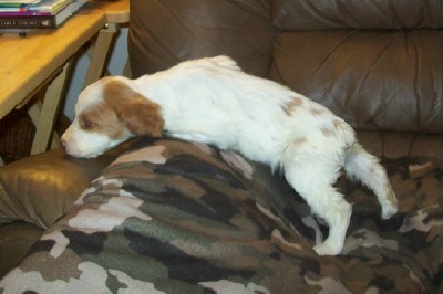 Pups whelped 11/9/11 out of Twincedar Ed's Hope and Twincedar Roy. Hope is a new young female from one of our best crosses. She is an intelligent, dog with lots of personality. Roy is a very nice young dog with a lot of style and intensity and a huge amount of natural ability! He has a great temperament and loves to please both in the field and at home. Take a look at Roy's pedigree. It reads like a who's who list in the Brittany world with 5 NATIONAL CHAMPIONS in a 4 generation pedigree! What an incredible dog with the lineage to back it up! We expect great things from this cross!